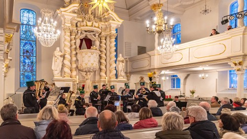 Es singen und musizieren für Sie die Zwäntzer Maad und die Erzgebirgischen Blasmusikanten.