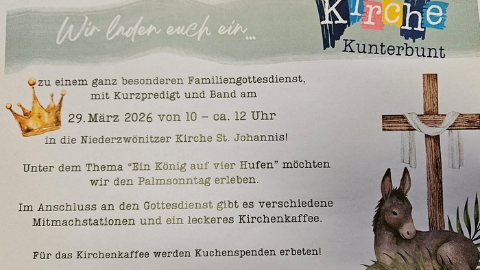 Herzliche Einladung zu einem besonderen Familiengottesdienst mit bunten Stationen und Kirchenkaffee im Anschluss!