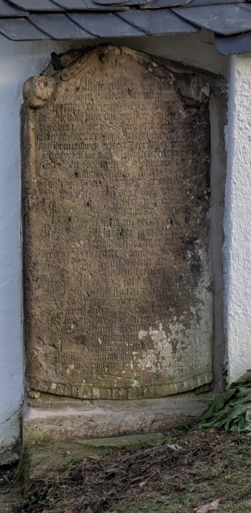 Barocker Grabstein, an der Friedhofsmauer neben dem Haupttor